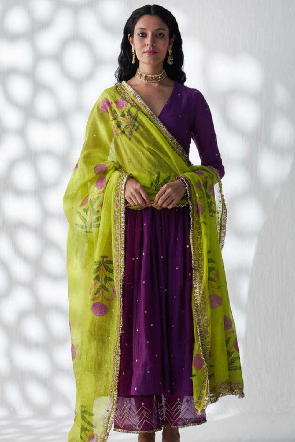 Pure Cotton Printed Pant Set in Wine