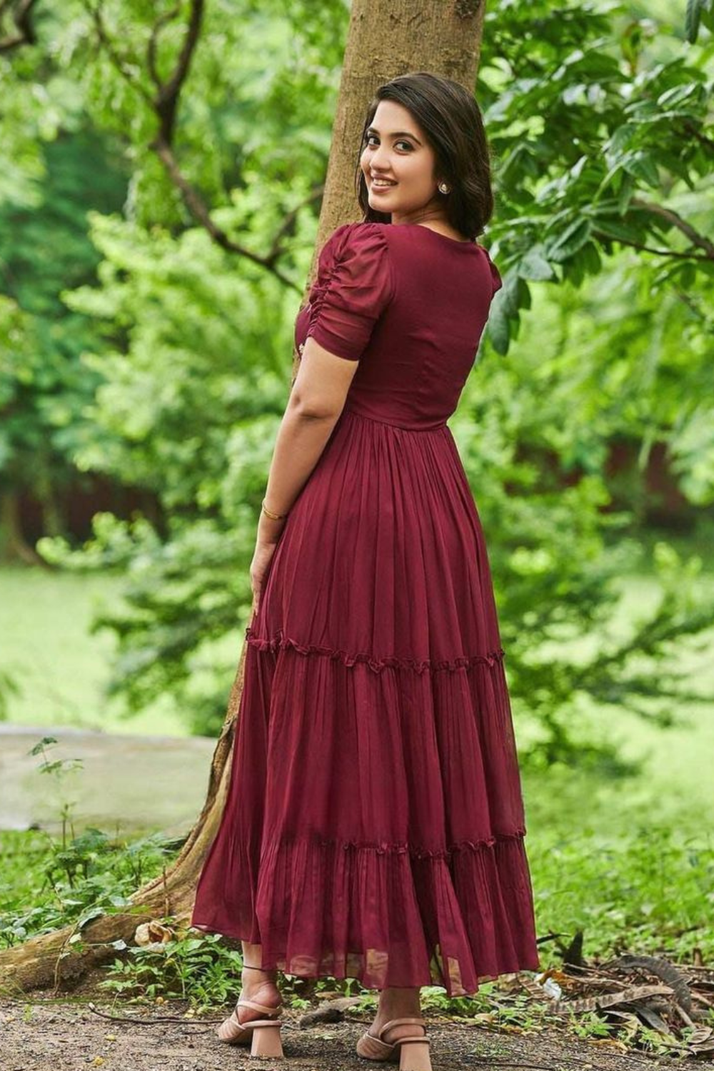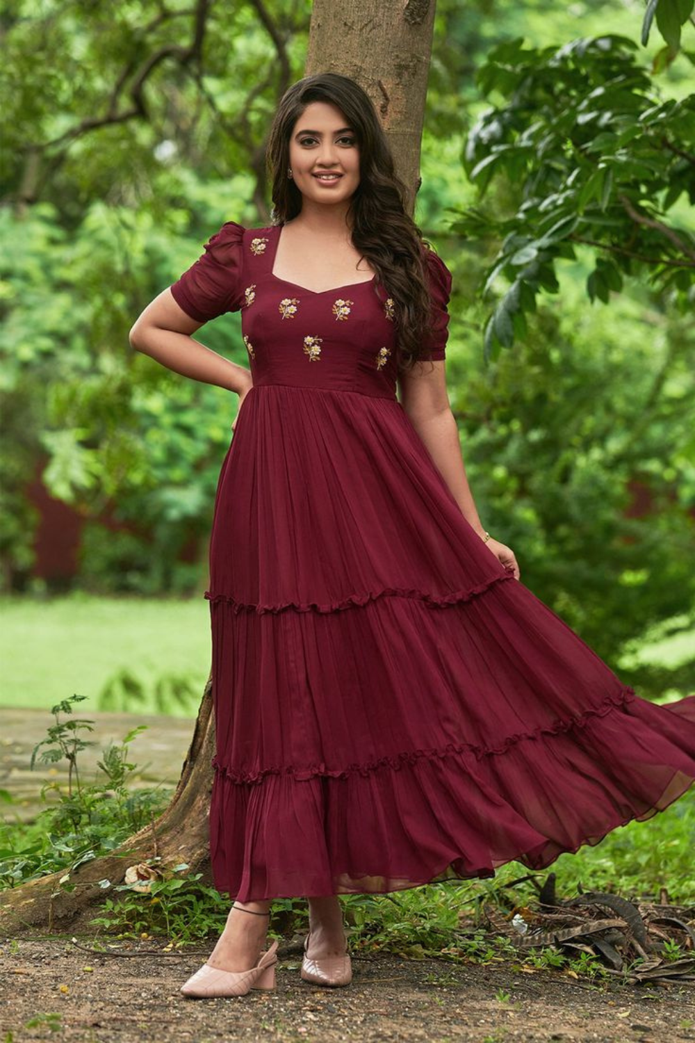 The Merlot Bloom Tiered Maxi Dress